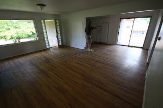 Just down the hall way from where the bathroom photos were taken is the main bedroom downstairs. the full windows and full 8' ceilings are a huge bonus, and will make this bedroom really attractive. The closet behind a studly looking Ben will be moved to the wall that the door is hinged on.